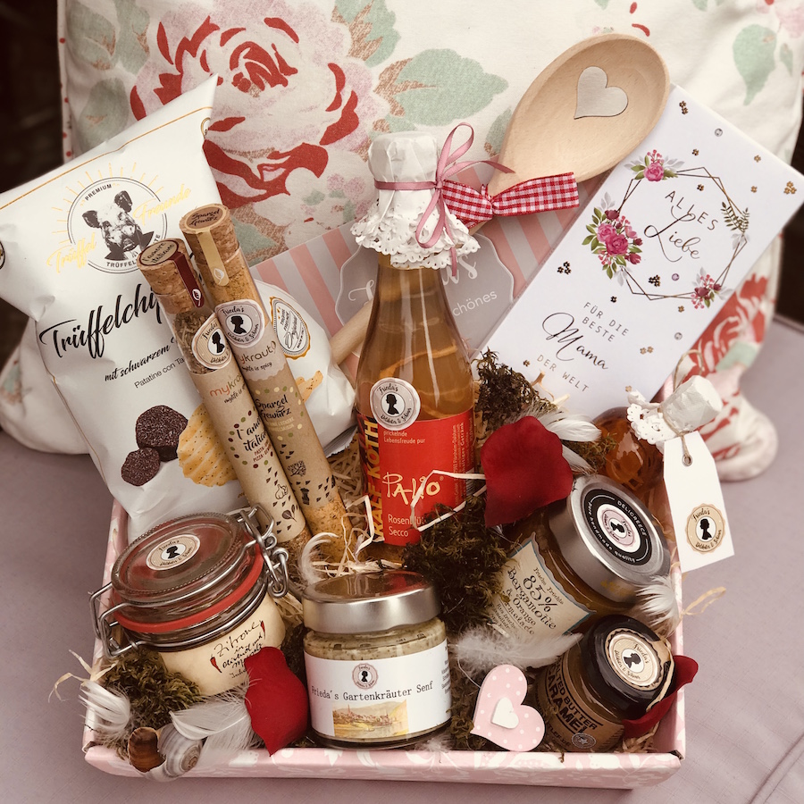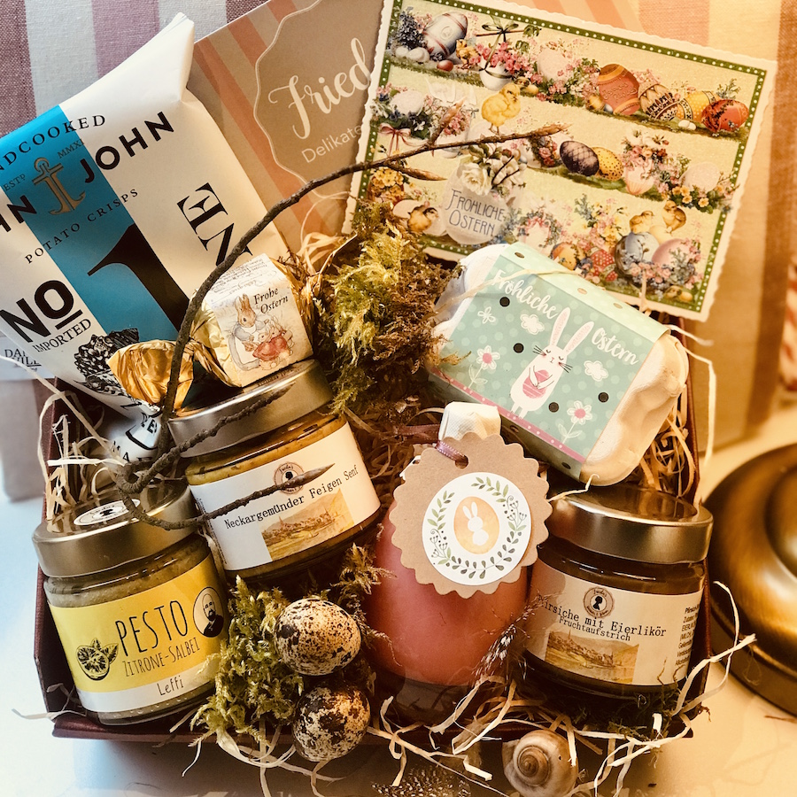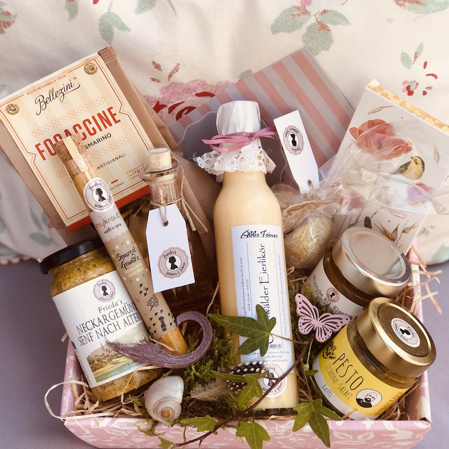 Frieda stellt Ihren Präsentkorb ganz nach Ihrem Geschmack zusammen - mit ausgesuchten Delikatessen, saisonal dekoriert und liebevoll verpackt. Ein echter Geheimtipp in Heidelberg und Umgebung.